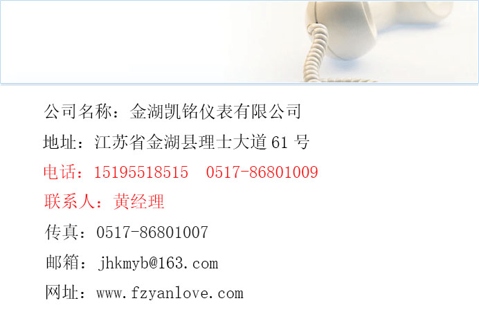 金湖凱銘儀表有限公司是一家生產(chǎn)儀器儀表廠家。本公司將以優(yōu)質(zhì)的產(chǎn)品、優(yōu)惠的價(jià)格、歡迎新老客戶誠(chéng)信合作。聯(lián)系電話:15195518515 黃經(jīng)理