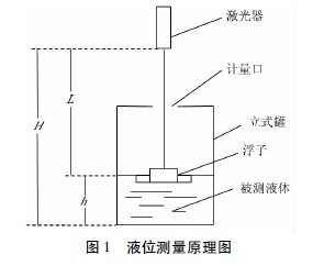 綜合考慮各方面要求,該設計方案選用雙頻激光干涉儀作為液位測量設備。如圖1所示,雙頻激光干涉儀的發(fā)射器豎直地置于儲罐頂部,激光透過儲罐頂部的玻璃照射到浮子上。浮子上的全反射棱鏡(錐體棱鏡)將照射來的激光束按原光路反射回雙頻激光干涉儀內(nèi)的接收裝置。當液位變化時,浮子隨液位的上升而上升,隨液位的下降而下降。激光發(fā)射器到浮子的距離也就發(fā)生了變化。由此,利用雙頻激光干涉儀的測量原理測量液位。其液位高度計算公式為:h=H-L