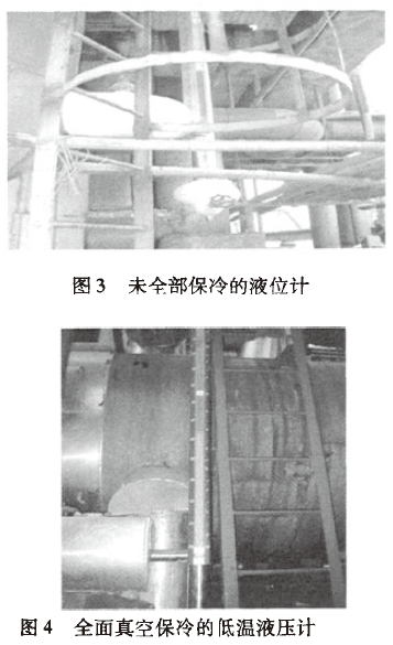 圖3、圖4為未全部保冷和全面真空保冷液位計(jì)使用效果。