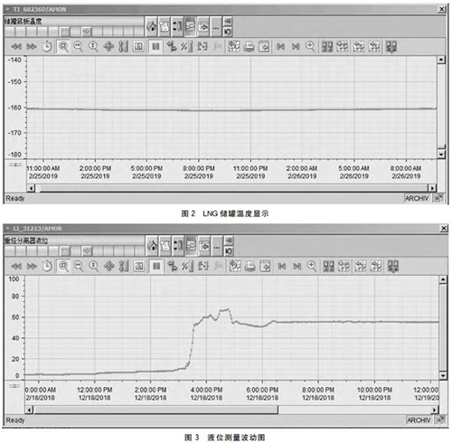 然后利用多孔法蘭(結(jié)合LNG項(xiàng)目的實(shí)際情況來選擇法蘭的孔數(shù)以及尺寸大?。?,將其接到LNG罐頂?shù)臏囟茸兯推鹘泳€箱內(nèi)部,再使用多芯電纜把4~20mA信號(hào)發(fā)送到控制系統(tǒng)?,F(xiàn)場安裝RTD熱電阻建議選用雙支,方便以后檢修更換。圖2為LNG儲(chǔ)罐溫度顯示。