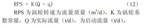 ①吸汽量。計(jì)算射孔層位吸汽量,可以通過六參數(shù)循環(huán)水液位計(jì)的渦輪流量計(jì)實(shí)現(xiàn)。忽略低流速時(shí)渦輪的非線性響應(yīng)及密度對渦輪轉(zhuǎn)速的影響,則渦輪轉(zhuǎn)速 RPS 與流速成正比 :