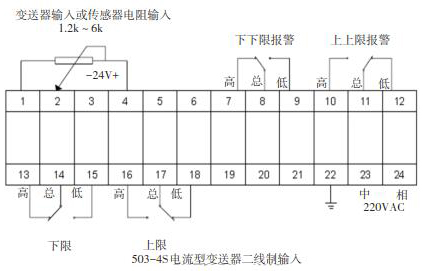 報(bào)警控制:面板有上限(H)、上上限(HH)或下限(L)、下下限(LL)報(bào)警燈及對(duì)應(yīng)的輸出繼電器。當(dāng)顯示值高于或低于用戶設(shè)定的上限、上上限或下限、下下限值時(shí),對(duì)應(yīng)的報(bào)警燈閃爍顯示,且對(duì)應(yīng)的繼電器接點(diǎn)狀態(tài)改變,同時(shí)伴有表內(nèi)蜂鳴器報(bào)警聲響。