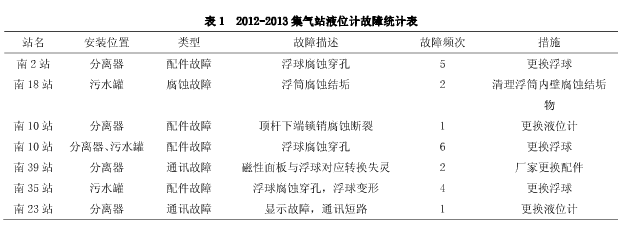 1、集氣站液位計(jì)運(yùn)行現(xiàn)狀