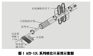 南10站試用磁致伸縮液位計(jì)類型為ACD-1DL系列,該類型液位計(jì)主要傳輸部分為:波導(dǎo)絲、浮子磁環(huán)、永久磁環(huán)、傳輸部分及檢測(cè)機(jī)構(gòu)等部分組成。傳感器的電路在波導(dǎo)絲上激勵(lì)出脈沖電流,該電流沿波導(dǎo)絲傳播時(shí)會(huì)在波導(dǎo)絲的周圍產(chǎn)生脈沖電流磁場(chǎng)。脈沖電流磁場(chǎng)與浮子產(chǎn)生的磁場(chǎng)相遇,在相遇空間產(chǎn)生一個(gè)扭轉(zhuǎn)波脈沖,脈沖沿波導(dǎo)絲傳回并由檢出機(jī)構(gòu)檢出,通過測(cè)量脈沖電流與扭轉(zhuǎn)波的時(shí)間差可以精確地確定浮子所在液面位置。