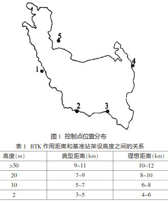 在該水庫工程當中,測量人員采用的坐標系統(tǒng)是1980西安坐標系。在具體的測量過程之中,測量人員運用2臺南方GPS儀器來收集相應(yīng)的測量數(shù)據(jù),并使用1臺徠卡全站儀、一臺GPS-RTK來完成相應(yīng)的數(shù)據(jù)采集工作。對水庫進行勘測定界的主要目的是針對淹沒線作用的土地范圍,對界樁實施測量與放樣,結(jié)合設(shè)計水位的高程,做好界樁拔放工作。因為該地區(qū)的地形比較陡峭,故測量人員決定采用雙基站方法開展測量工作。該地區(qū)共有5個控制點,具體的位置分布見圖1。另外,因為RTK數(shù)據(jù)鏈使用超高頻電磁波,數(shù)據(jù)鏈所發(fā)生的電磁波頻率比較高,能夠得到456MHz,為了保證測量數(shù)據(jù)更為精確,測量人員可以將基準站設(shè)置在測區(qū)的zui高位置,并結(jié)合RTK作用距離和基準站架設(shè)高度之間的關(guān)系,合理控制基準站的架設(shè)高度,RTK作用距離和基準站架設(shè)高度之間的關(guān)系見表1。