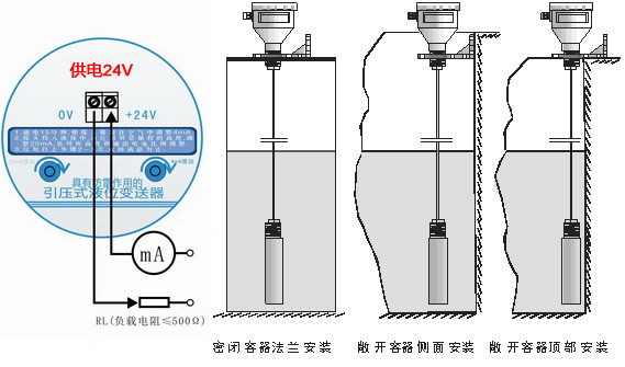 投入式液位變送器一般采用擴散硅或陶瓷敏感元件的壓阻效應,將靜壓轉(zhuǎn)成電信號。經(jīng)過溫度補償和線性校正。轉(zhuǎn)換成 4-20mADC 標準電流信號輸出。投入式液位變送器的傳感器部分可直接投入到液體中,變送器部分可用法蘭或支架固定,安裝使用*為方便。固態(tài)結(jié)構(gòu),無可動部件,高可靠性,使用壽命長從水、油到粘度較大的糊狀都可以進行高精度測量,不受被測介質(zhì)起泡、沉積、電氣特性的影響寬范圍的溫度補償。它還具有電源反相*性保護及過載限流保護。