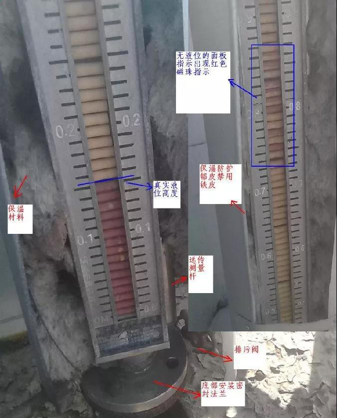 現(xiàn)場(chǎng)使用的浮子液位計(jì)常常會(huì)出現(xiàn)面板的磁珠指示不準(zhǔn)確,液位指示不連續(xù),代表液位的紅色磁珠中有白色顯示,空液位的白色磁珠中有一部分是紅色液位指示,情況糟糕的時(shí)候紅白磁珠雜亂不堪。