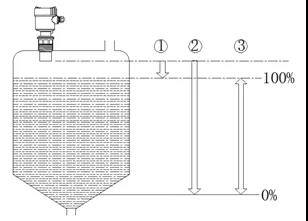 2、換能器發(fā)射面到*高液位之間的距離應(yīng)大于液位計盲區(qū)(安裝高度>*高液位+盲區(qū))如圖1所示: