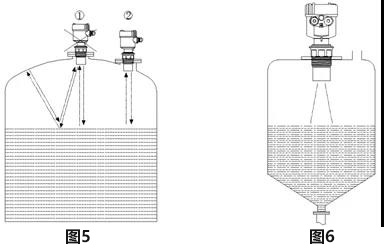 6、對于頂部為平面的錐形容器,污水池液位計應(yīng)盡量安裝在頂部中央,這樣可以保證測量到容器底部,如圖6所示。