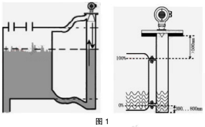 如圖1所示,導(dǎo)波雷達(dá)液位計(jì)是依據(jù)時(shí)域反射原理(TDR)為基礎(chǔ)的雷達(dá)液位計(jì),雷達(dá)液位計(jì)的電磁脈沖以光速沿鋼纜或探棒傳播,當(dāng)遇到被測介質(zhì)表面時(shí),雷達(dá)液位計(jì)的部分脈沖被反射形成回波并沿相同路徑返回到脈沖發(fā)射裝置,發(fā)射裝置與被測介質(zhì)表面的距離同脈沖在其間的傳播時(shí)間成正比,經(jīng)計(jì)算得出液位高度。某電廠經(jīng)過技術(shù)改造采用波導(dǎo)雷達(dá)后,液氨液位波箱現(xiàn)象消失,儲罐運(yùn)行良好。