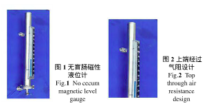 ③ 測量結(jié)果誤差較大?,F(xiàn)在正逐漸選用基于磁耦合原理設(shè)計(jì)的磁翻板液位計(jì)代替玻璃板液位計(jì),此液位計(jì)是基于阿基米德定理,磁性浮子在液體中產(chǎn)生浮力,根據(jù)磁鐵同性相斥,異性相吸的性質(zhì)制成。但傳統(tǒng)的磁翻板液位計(jì)也存在一些弊端,如其下端浮子腔為盲腸結(jié)構(gòu),設(shè)備盲腸在石油石化系統(tǒng)是1個(gè)大的安全隱患,介質(zhì)腐蝕物的積聚對該處焊縫產(chǎn)生應(yīng)力腐蝕開裂,介質(zhì)中的水分在該處沉降,冬季有產(chǎn)生凍凝的風(fēng)險(xiǎn),這些隱患時(shí)刻威脅著企業(yè)的安全。